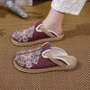2024 Solid Color New Fashion Ethnic Style Embroidered Linen Breathable Shoes for Women Outdoor Casual Women's Half Slippers