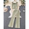 Fashion Niche Style Anti-Aging Outfits Women's Short Crop Top Sleeveless Vest Tops + High Waist Wide Leg Leisure Suit Pants