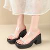 2024 High Quality Women's Shoes Summer Fashion Open Toe Solid Color Women's Slippers Transparent Rhinestone Women's High Heels