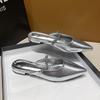 Fashion New Women's Designer Pointed Toe Mirror Silver Leather Slippers Women Crystal Band Shoes Outdoor Slides Low Heel Mules Sandals