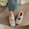French Mary Jane Mao Mao shoes for women's outer wear 2025 autumn and winter new one-word single shoes with bow, shallow beanie shoes