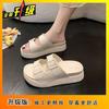 Indoor non-slip one-word drag muffin bottom Internet celebrity slippers 2025 summer Korean version heightening casual beach shoes women's outer wear