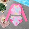 סט שני חלקים של בנות פעוטות רשגארד, חולצת בגד ים חמודה עם שרוול ארוך, תחתית בדוגמת בתולת ים עם קפלים אלסטיים, דפוס מודפס גרפי מלפנים מראה חמוד יותר, קו צוואר צוות.