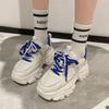 נעלי ספורט קלאסיות שמנמנות לנשים קפיץ רשת שרוכים עקבים גבוהים נעלי פלטפורמת אצבע עגולה לנשים נעלי גפר בתוספת מידה