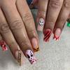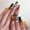 Wearable Halloween Nail Art: Long Pipe Nails with Stars, Hearts, Ghosts, and Spider Webs.