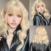 Synthetic Hair Yellow Blonde Wigs for Women Short Wavy Curly Wig with Bangs Water Wave Wig Daily Girls Cosplay Halloween Party