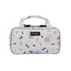 The midnight navy base features a beautiful jacquard weave with cerulean blue high heels, reminiscent of Cinderella's glass slippers. The lining is blue to match the color of the high heels. Enjoy the contrast between the exterior and interior while storing your makeup items. It has a holder space for storing small items upright and a brush space for storing brushes together. This multi-functional pouch is designed to be easy to see and access.