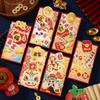 6pcs Cartoon 2025 New Year Red Envelopes Blessing Lucky Money Pockets Red Packet Spring Festival