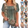 Women's Casual Fashion Strapless Top Pleated Short Sleeve Print T-Shirt