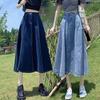 Gonna jeans casual a vita alta primavera estate donna con foro gonna bianca in denim con pacchetto