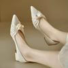 Shallow Apricot Women's Shoes Thin Heels Pearl Square Toe with Medium Pleated Ladies Footwear Shoe Casual Popular Fashion Young