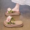 2025 summer new flower beach slippers women's summer wear seaside vacation with skirt thick-soled sandals
