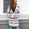 Striped Knitted Cardigan Autumn and Winter New V-neck Sweater for Women