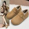 Leather snow boots women's cotton shoes autumn and winter new soft-soled piled thickened warm fluffy shoes flat short boots