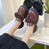 Large size bow women's spring and autumn new platform middle heel lazy retro small leather shoes