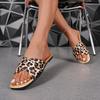 Large size cool slippers women's summer new leopard print square head sandals wear flat one-word slippers