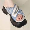 Fashion Thick Soled Slippers for Women Summer Chain Denim Chunky Heel Fashion Cross Slides Open Toe Outdoor Beach Woman Walking Slides