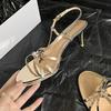 Gold Patent Leather Women Sandals Cross Strap Pointed Toe Open Toe Thin High Heels Sandals 2025 Summer New Casual Sandal