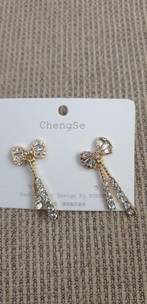 Fashion drop earrings with bling bling and bow Beautiful earrings that you can wear on a dressy night out and I like the bow detail !