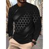მარტივი სტერეოსკოპიული ნიმუშის პრინტი საზაფხულო მამაკაცის ყელიანი მაისური ჩვეულებრივი გრძელმკლავიანი დიდი ზომის მაისური მოდური პულოვერი მამაკაცის ტანსაცმელი