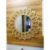 A wall mounted mirror frame with a beautiful wood pattern. This wooden mirror panel measures 24 inches in diameter and will make a beautiful addition to any room. The intricate wood pattern carved into the frame creates a calm and soothing atmosphere, making it the perfect addition to a living room, bedroom or entryway. The high-quality wood construction ensures durability and appearance, while the mirror itself adds brightness and spaciousness to any space. Enhance your home decor with this attractive, stylish wall mounted mirror.