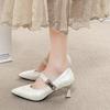 Office Shoes for Women Pumps Metal Decoration on Heeled Woman Footwear Normal Leather Casual Thin Heels High Career Pointed Toe