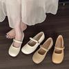 Retro flat-soled single shoes children's niche 2025 spring square head shallow mouth soft leather with skirt Doudou ladyshoes work tide