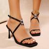 2025 summer new square-headed open-toe one-button rhinestone high-heeled women's shoes satin sexy versatile thick-heeled sandals