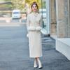 Stay warm and fashionable with this elegant winter jacket and skirt set. Crafted from high-quality polyester, this set features a solid pattern and a sporty style that seamlessly blends comfort and chic design. The jacket is adorned with faux fox fur made from polyester, offering a lush look that is both animal-friendly and stylish. Perfect for winter outings, this ensemble ensures you stay cozy while making a bold fashion statement.