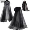 Halloween Gauze Cape with Hood Adult Full-Length Sheer Mesh Hooded Cloak Halloween Witch Cosplay Costume for Renaissance Medieval Party