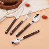 24pcs Red Wooden Handle Stainless Steel Dinnerware Set Steak Knife Fork Coffee Spoon Tableware Christmas Party Kitchen Flatware