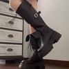 New high locomotive boots knight boots women's thick heel buckle thick-soled retro western cowboy boots long boots