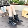 Fashion Short Boots for Women's High-end Wide Leg Leather Flat Bottomed Western Mid Leg Knight Boots Autumn and Winter Boots Khaki Black
