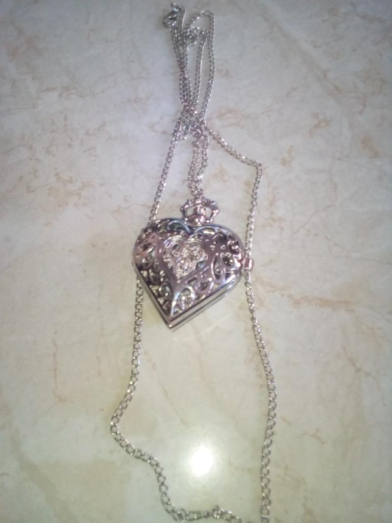 Kvinner Vintage hule hjerte-formet anheng med lang kjede halskjede søt lommeur