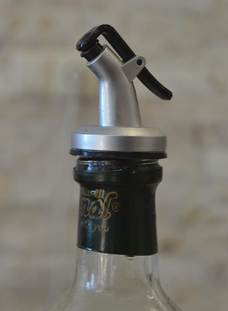 Tampa para garrafa de azeite de oliva que controla a quantidade de óleo que sai da embalagem, bem como protege o produto. O item apresenta incrível praticidade, podendo ser facilmente aberto e fechado com um simples toque na sua válvula de controle (evitando que suje as mãos de óleo). A rosca serve normalmente nas embalagens tradicionais de azeite. Recomendamos.