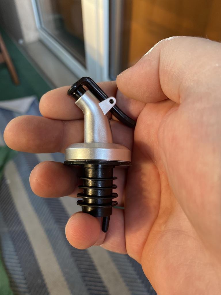 Olive 🫒 oil dispenser I was looking for a good dispenser for a while, but not really searching for it 🤭. Then when it pop up on Joom's homepage, i ordered right away. Honestly it doesn't fit well to glass container but somehow oil is not leaking while pouring.