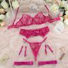 Fashion New Chain Decoration Women's Eyelash Lace Erotic Underwear Mesh Perspective Sexy Lingerie Garter Ring Thong Set BDSM