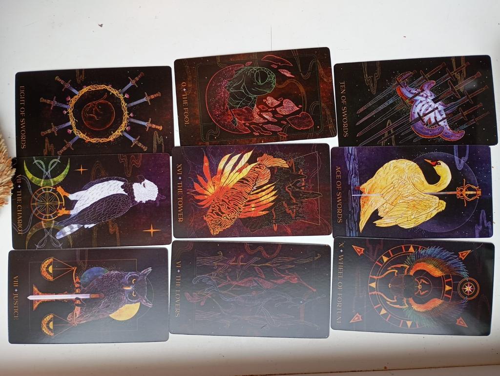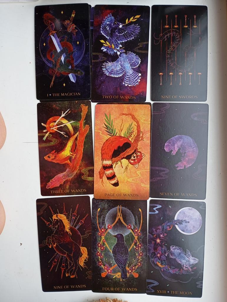 søte dyrekort, noe mørk i fargekomposisjonen, kan sees på bildet. forklaring av standard tarotkortstokk. Jeg hater vaskebjørn, heldigvis er det ingen blant dem..