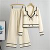 Høst Vår Uformelle Strikkesett Halv Høy Krage Stripet Splitt Pullover+Vide ben Lange bukser Kvinner Mote Løs genserdrakt