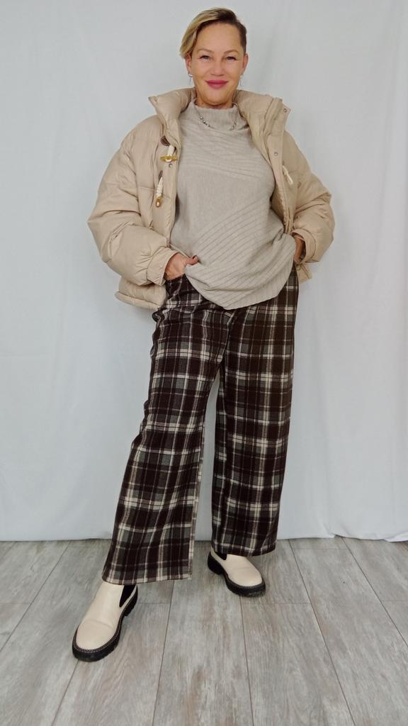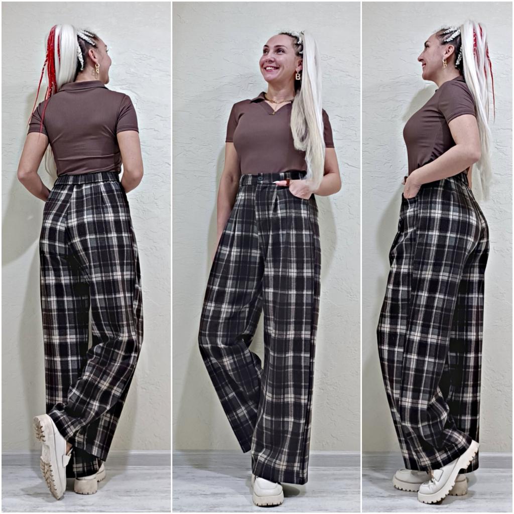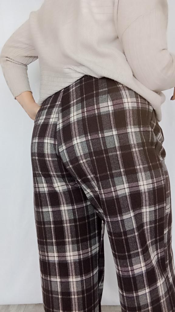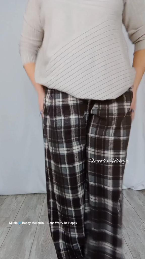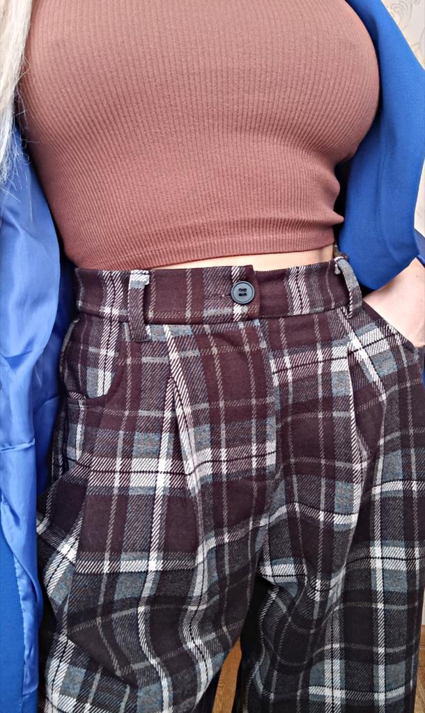 Koreansk mote Høst Vinter Kvinner Varme ullbukser Høy midje Svart kafferutete bukser med brede ben Vintage tykk ull rette bukser