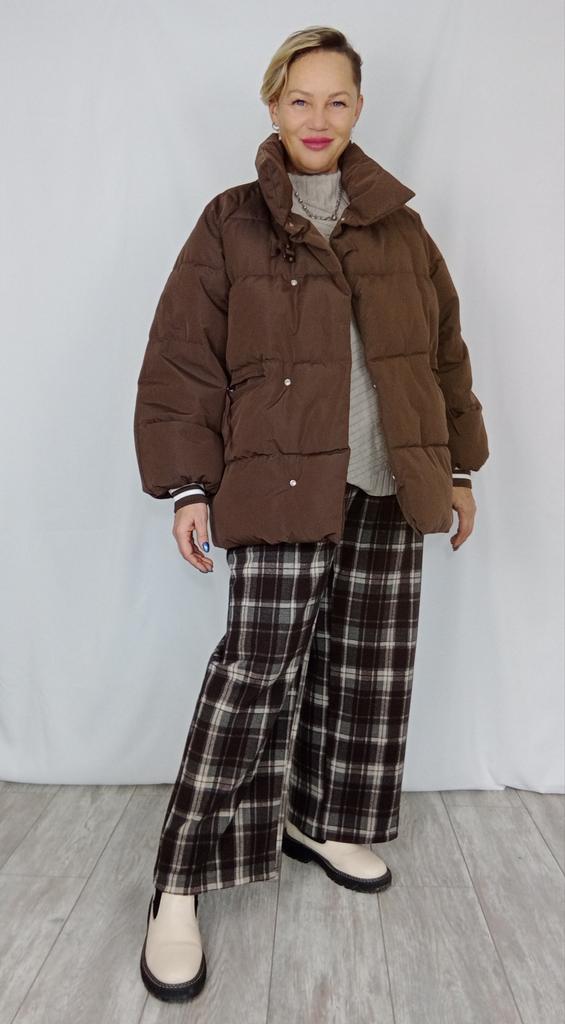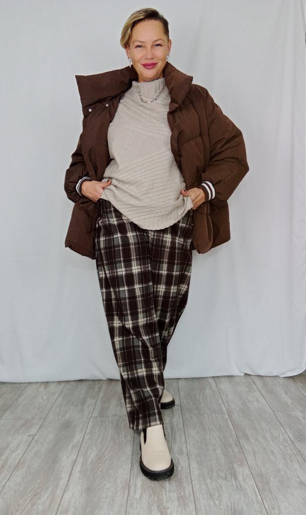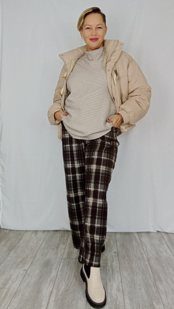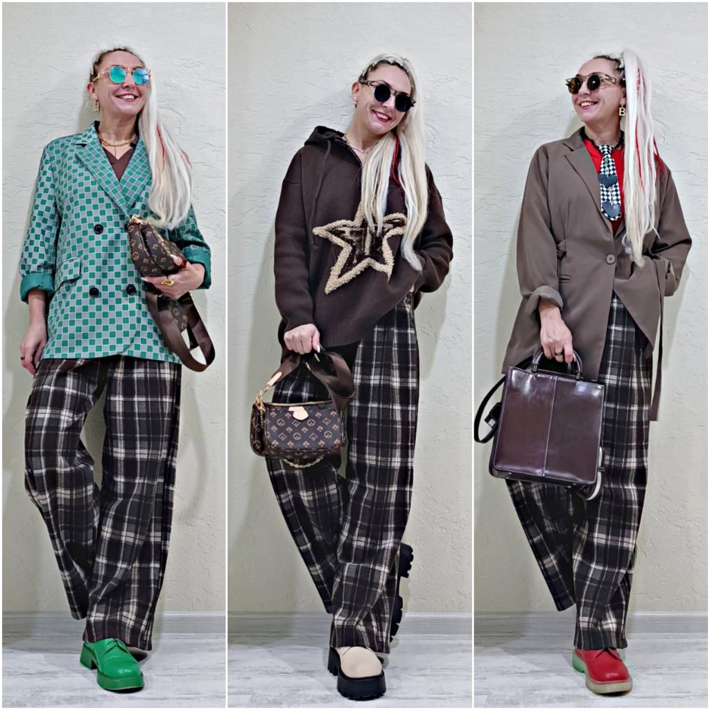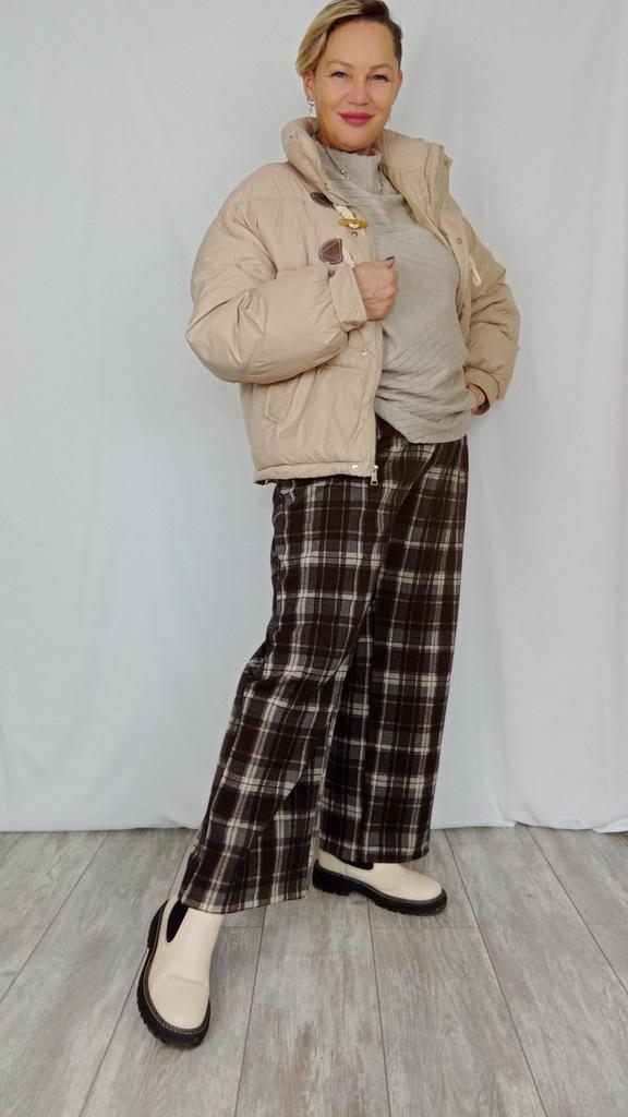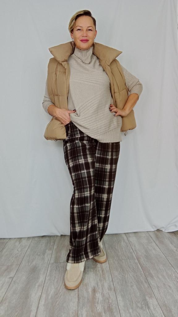 Koreansk mote Høst Vinter Kvinner Varme ullbukser Høy midje Svart kafferutete bukser med brede ben Vintage tykk ull rette bukser