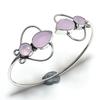 Natural Pink Chalcedony Gemstone 925 Sterling Silver Cuff Bangle Adjustable m2G89