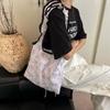 ins single shoulder floral bag black bow pink printed canvas bag student shopping bag tote bag