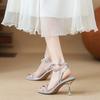 Sexy Rhinestone High Heeled Sandals Summer Square Toe Stiletto Women's Shoes One Line with Sandals Women