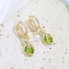 Rhinestone Shaped Metal Pendant Imitation Pearl Earrings for Women Green Luxury Mosquito Coils Without Piercing Ear Clips