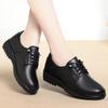 Solid Black Oxford Shoes Woman Work Leather Wedge Flats Female Casual Lace Up Spring Shoes Women's kitchen Non-slip Loafers