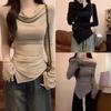 Fashion Off Shoulder Skew Collar Slit Sexy T-shirt Women Tops Elegant Long Sleeve Casual Women's T Shirt Irregular Chic Slim Ladies Pullover Tee 26009