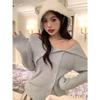 Retro Hot Girl Belt Button Hole Lazy Loose Knitted Sweater for Women