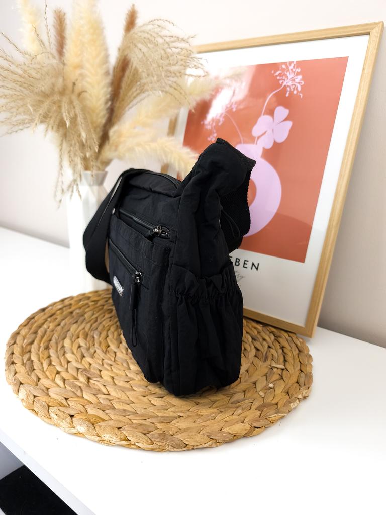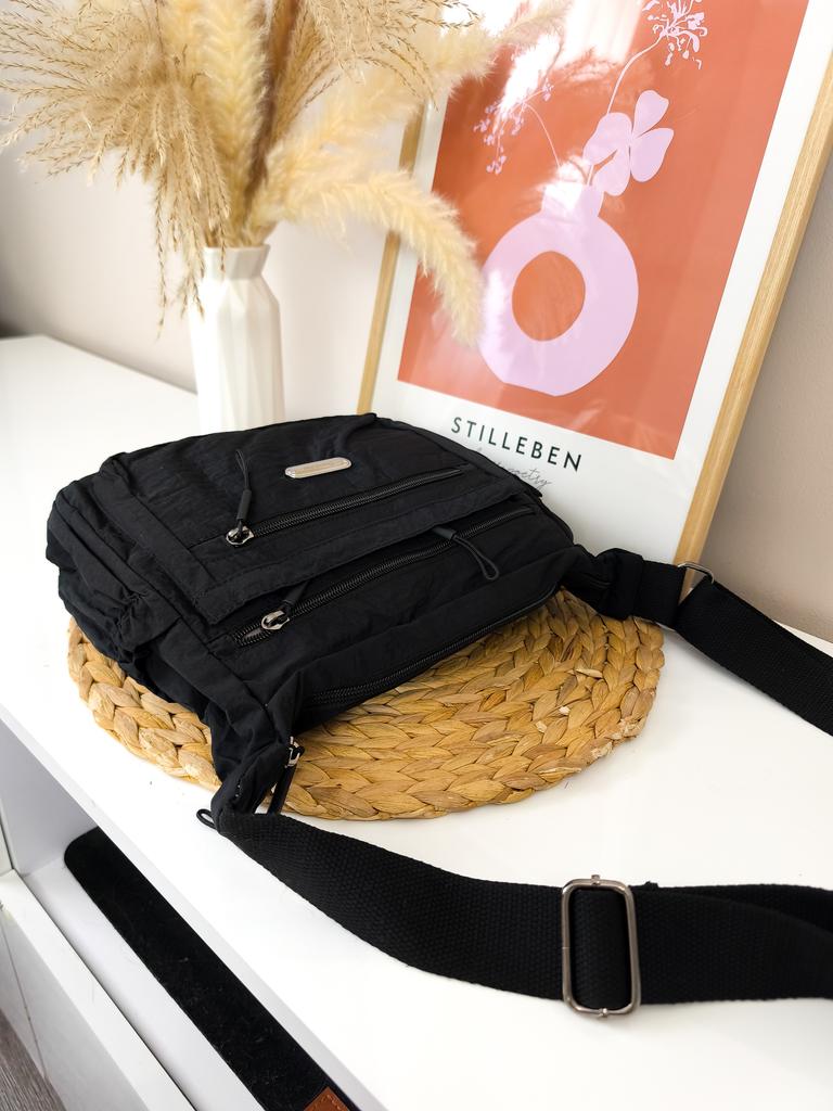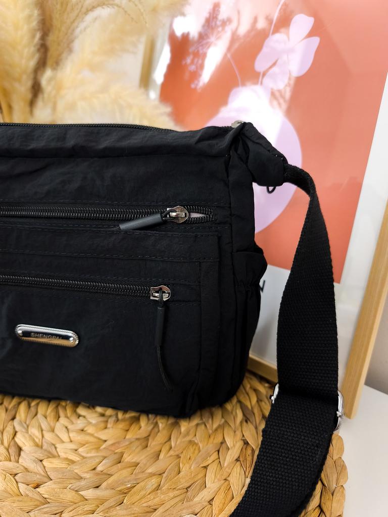 Жіноча сумка через плече середнього розміру. Сумка на одне містке відділення під блискавкою. Усередині на зносостійкому підкладі з додатковими кишенями на блискавці та без застібки. На передній панелі сумки також є дві кишені-відділення, на задній стороні сумки кишеня на блискавці, дві бічні кишені без застібки. Сумку можна носити через плече, довжина ремінця регулюється. Сумка виконана з якісного непромокаючого поліестеру та гарної фурнітури. Красива сумка жіноча в спортивному стилі підійде для носіння на кожен день, в дорогу. Завдяки своїй місткості можна буде взяти з собою всі необхідні речі.