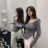 French Off-Shoulder Pleated Long-Sleeve Slim Fit T-Shirt - Chic Spring & Autumn Top for Women
